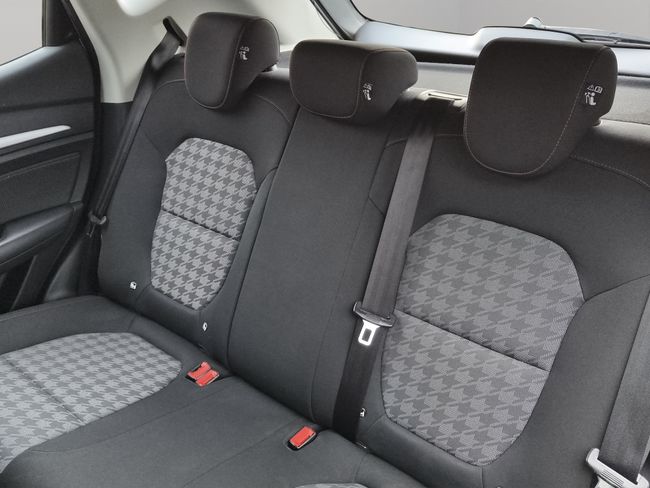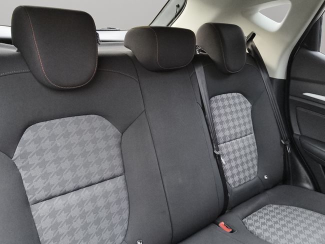 - Asientos traseros de tres plazas de tipo banco de orientación delantera con banqueta fija y respaldo abatible asimétrico